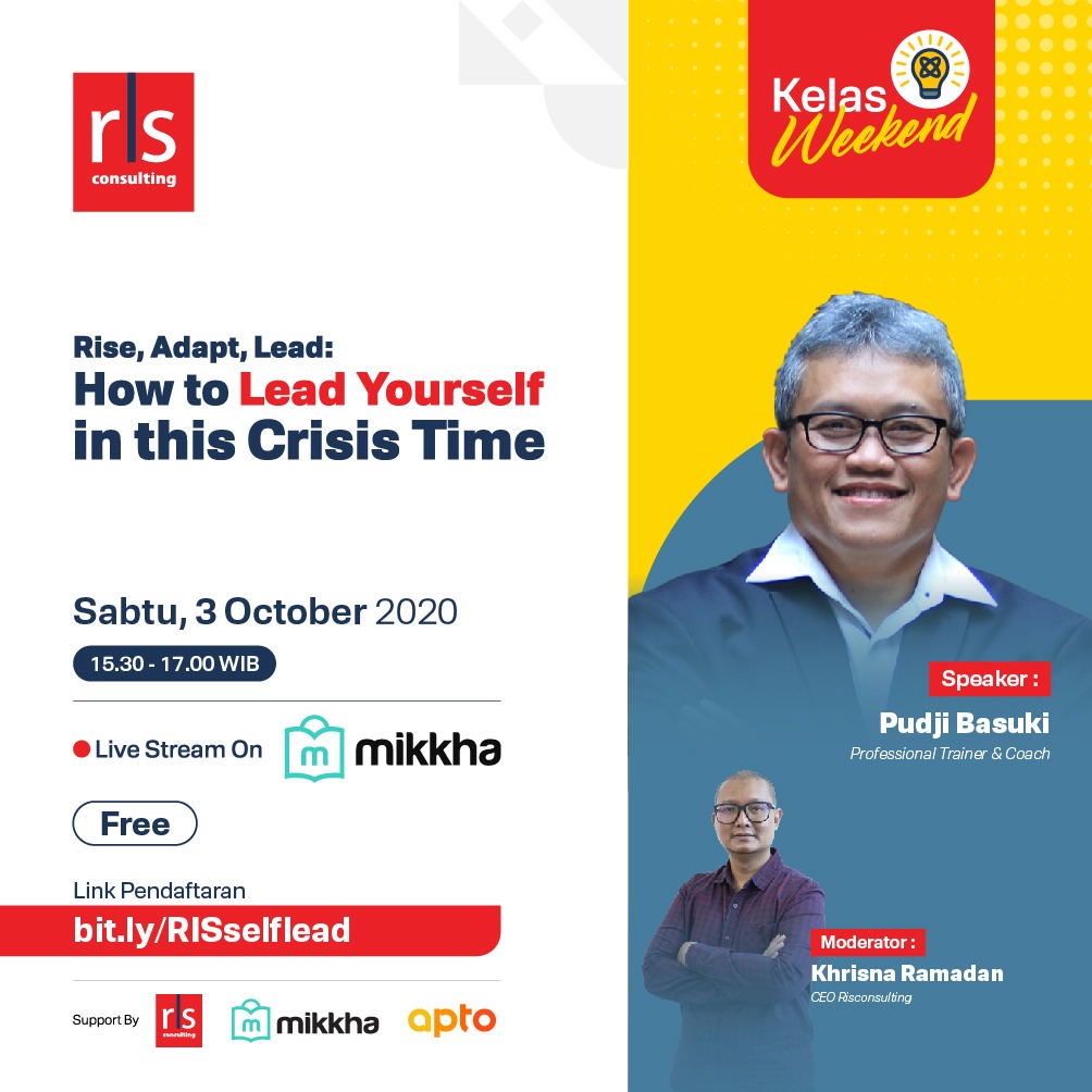 Webinar 90 menit ini akan mengupas bagaimana anda mampu memimpin diri sendiri, dan bagaimana anda dapat bangkit, beradaptasi dalam menjalani pekerjaan, usaha serta kehidupan yang harus terus berjalan di era Pandemi .