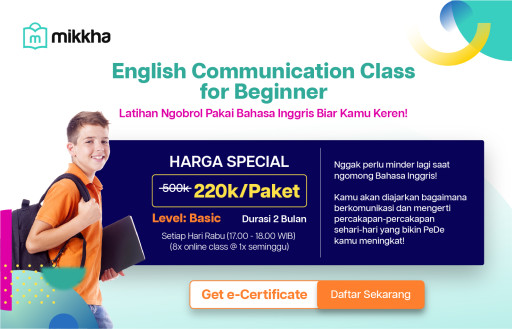 Agar kemampuan bahasa inggrismu terlatih dan supaya kamu makin percaya diri, yuk ikutan Basic English Communication for Beginner dari Mikkha. Kamu bisa mengikuti kelas selama dua bulan penuh dengan satu kali pertemuan setiap minggunya. Dalam kelas ini, kamu akan mempelajari bagaimana cara berkomunikasi berdasarkan topik-topik yang sudah disediakan dan pastinya sesuai dengan para pemula. Intinya, kamu akan belajar bagaimana agar kamu percaya diri berbicara dan berkomunikasi menggunakan bahasa inggris.